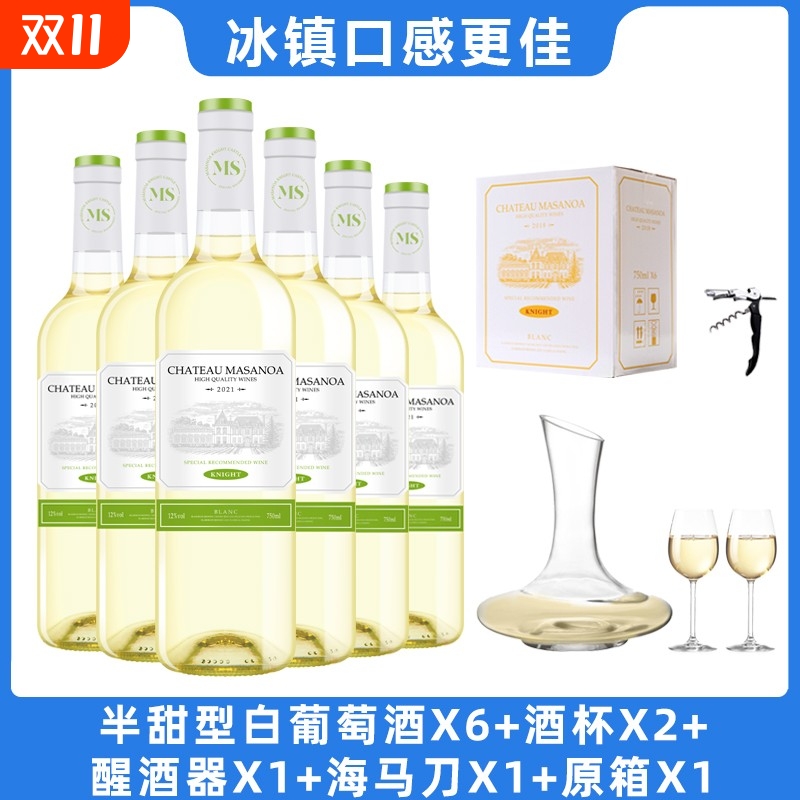 玛莎诺娅骑士古堡半甜型白葡萄酒12度750ml6支装整箱送酒具