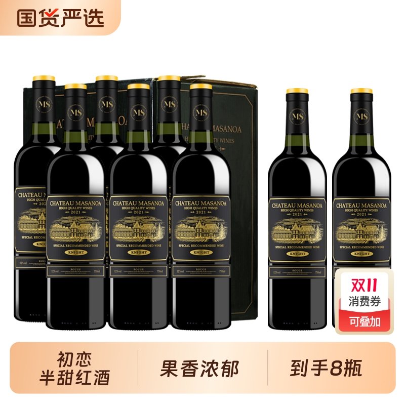 玛莎诺娅整箱古堡半甜型红酒白葡萄酒12度750ml8瓶骑士