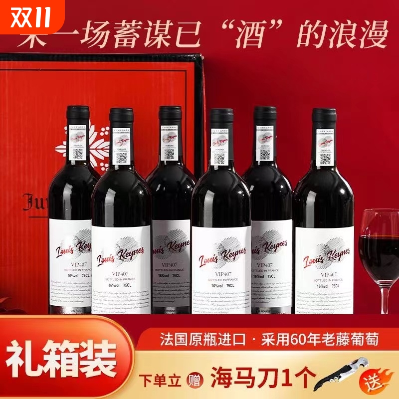 法国原瓶进口凯恩斯VIP407干红葡萄酒750ml*6支送礼酒水