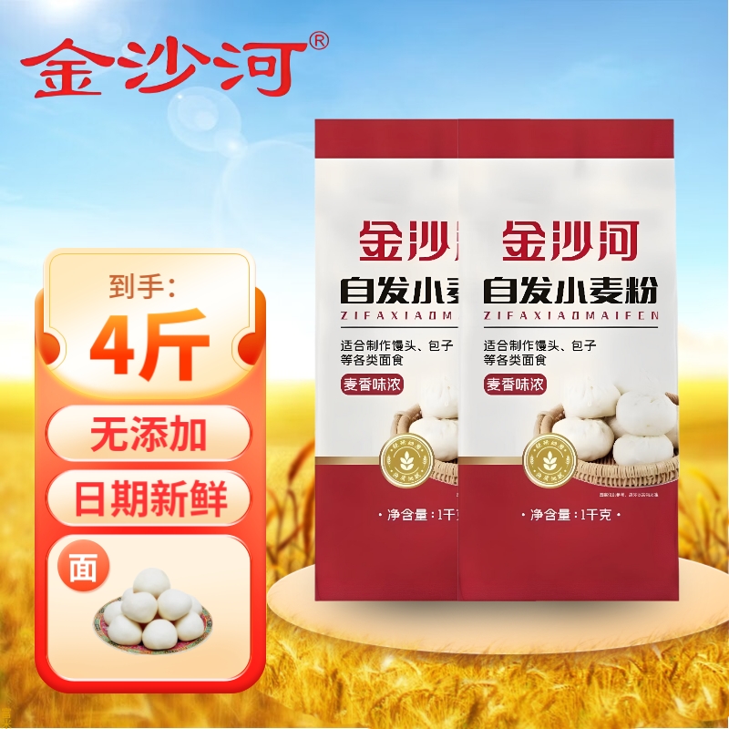 金沙河自发面粉2斤*2袋无添加自带酵母小麦粉做馒头包子花卷发酵