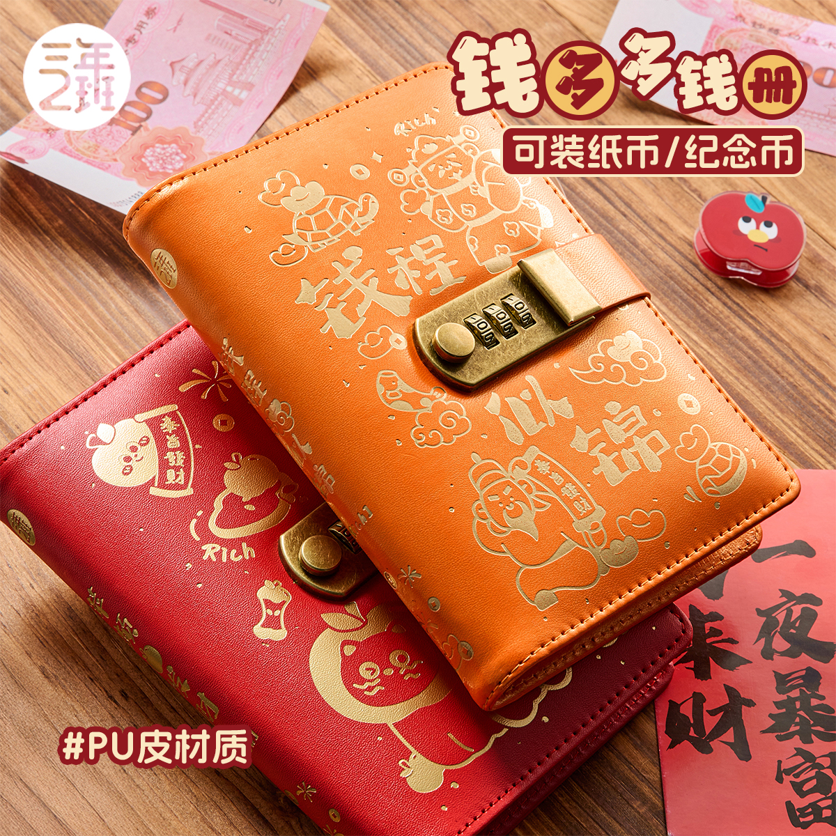 2025新款现金存钱本大容量可放现金带密码锁存钱夹钱册人民币纸币