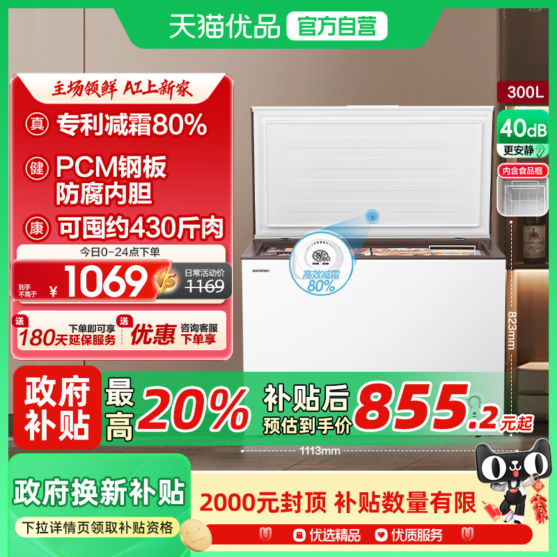 海尔200L/300升家用冷柜一级能效减霜超低温冷藏冷冻大容量冰