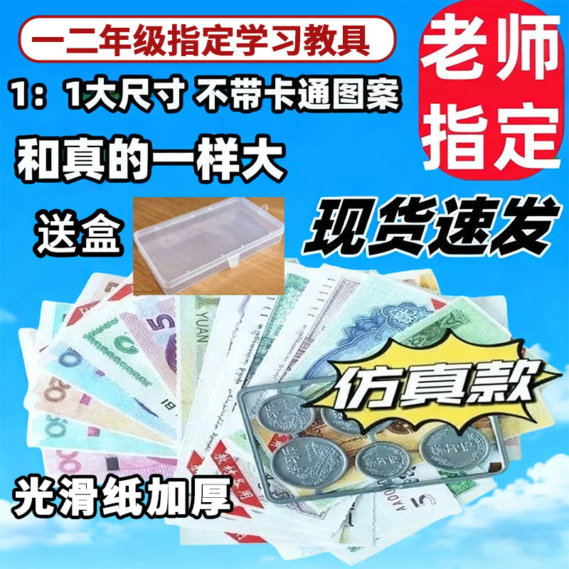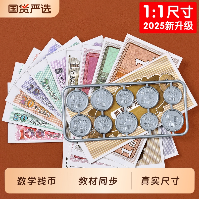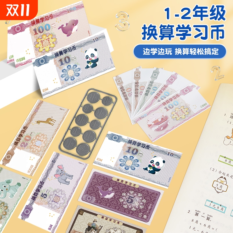 一二年级上册下册数学认识人民币学习教具元角分换算练习学具纸币票样