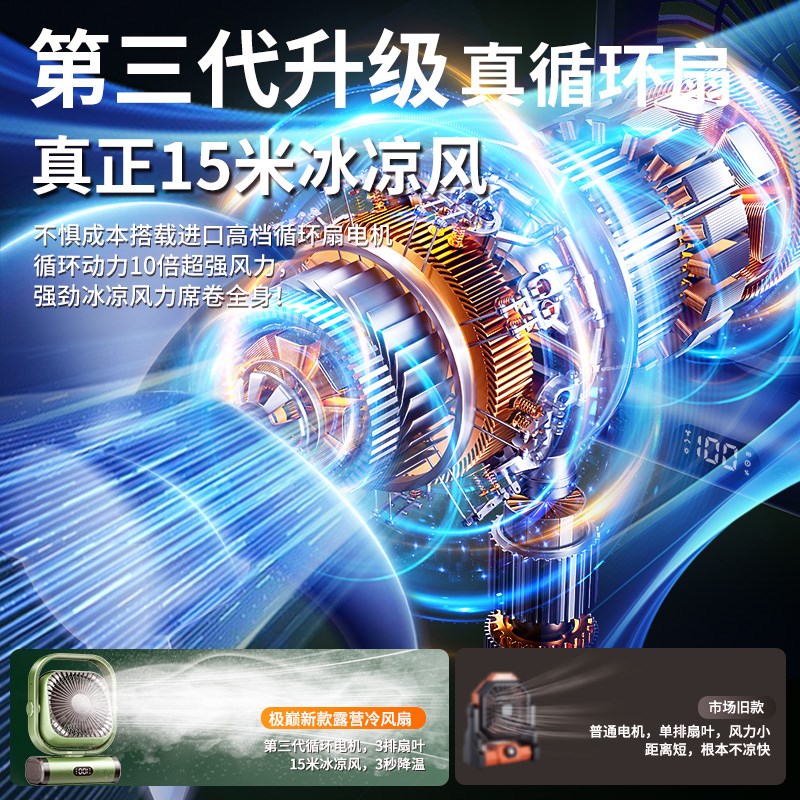 【2024新款营户外露】风扇超长续航充电小型无声电风扇便携式us