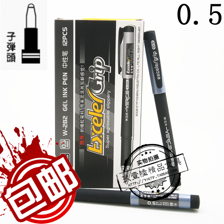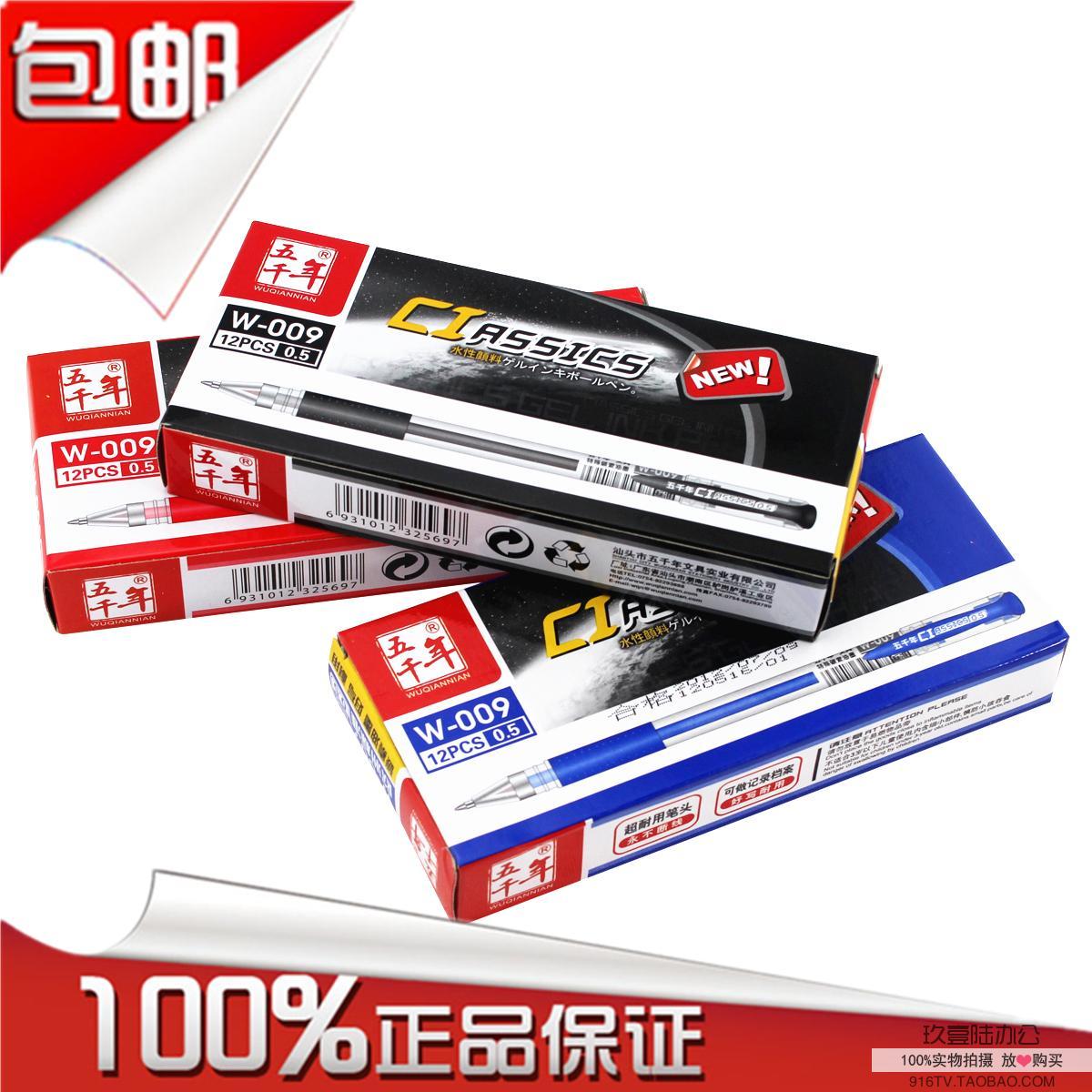 包邮 五千年W-009 欧标中性笔0.5mm 蓝/红/黑色水性笔