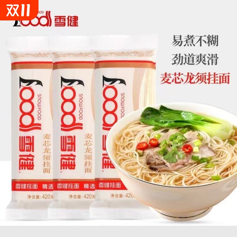 雪健麦芯龙须面800g细面条爽滑拉面挂面汤面凉面方便面家用速食