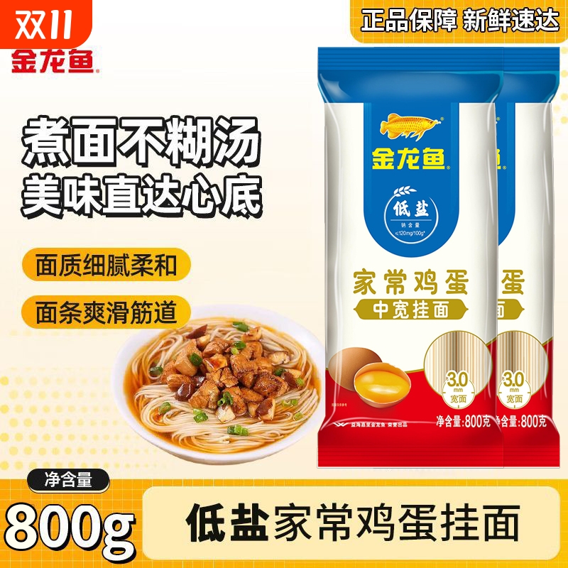 金龙鱼家常鸡蛋挂面800G家用中宽挂面条汤拌面炒面低盐挂面原味面