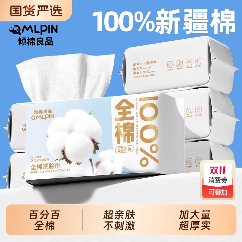 倾棉良品一次性全棉洗脸巾100%抽取式擦脸洁面棉柔巾母婴可用国货