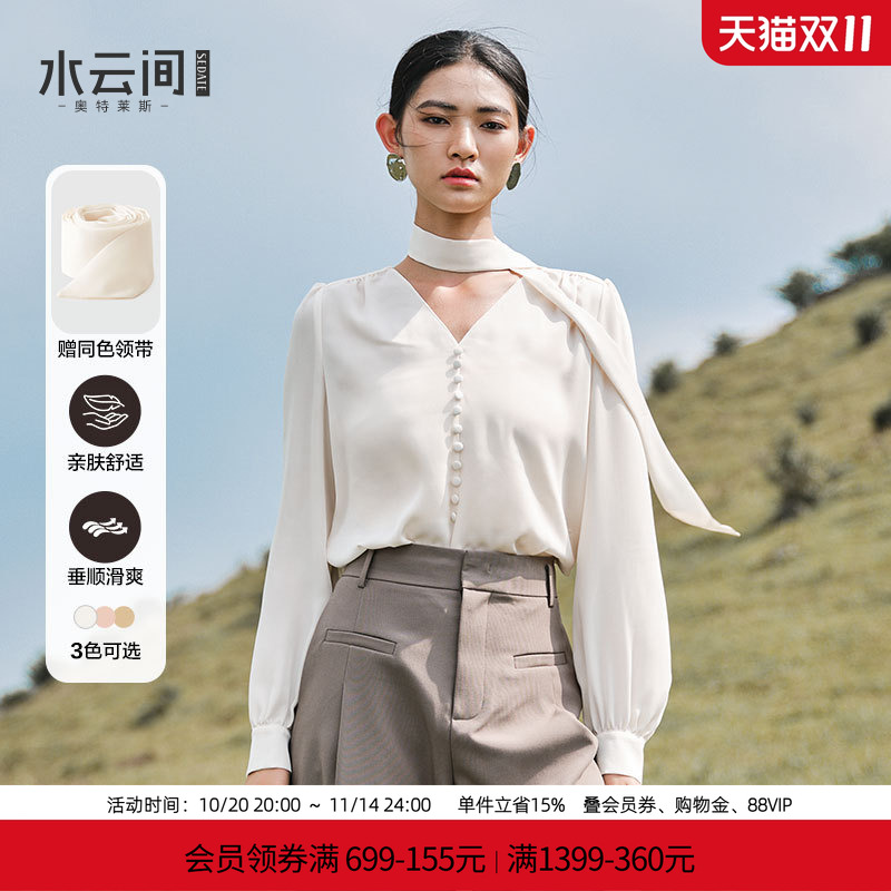 水云间知识分子风飘带衬衫女长袖系带内搭衬衣上衣通勤百搭时尚春