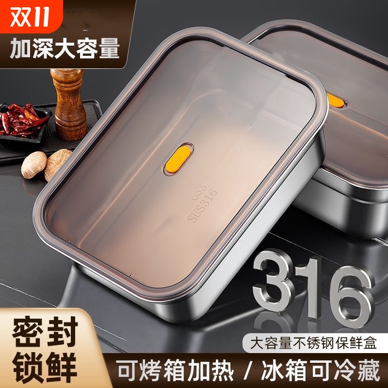 不锈钢保鲜盒方盘带盖长方形托盘冰箱食物冷冻盒加厚方盆备菜盘