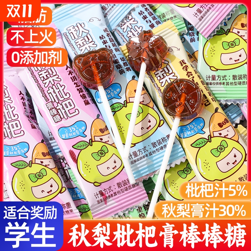 奖励学生秋梨膏雪梨枇杷棒棒糖无添加不上火小零食解馋糖果万圣节
