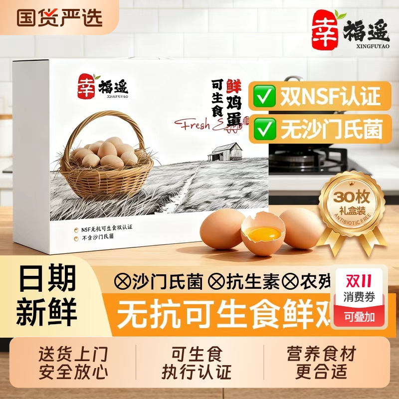 幸福遥可生食NSF认证谷物鲜鸡蛋营养首选蛋送货蛋黄国货抗生素