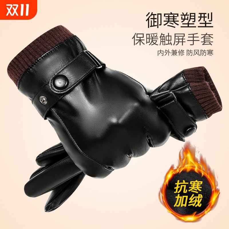 真皮手套男冬加绒加厚防水棉手套
