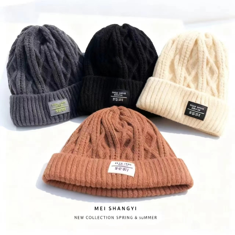 加绒针织帽子女冬天加厚保暖骑车防寒护耳帽韩版字母百搭毛线帽男