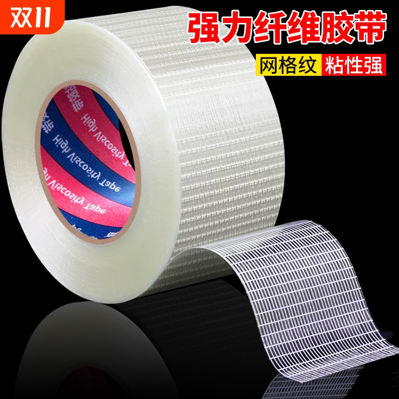 高粘度网格玻璃纤维胶带工业飞机模型固定封箱耐磨电器冰箱重物搬家锂