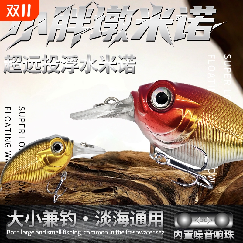 路亚鱼饵浮水米诺远投噪音珠潜水假鱼饵淡水翘嘴鲈鱼鱼海鲈专用