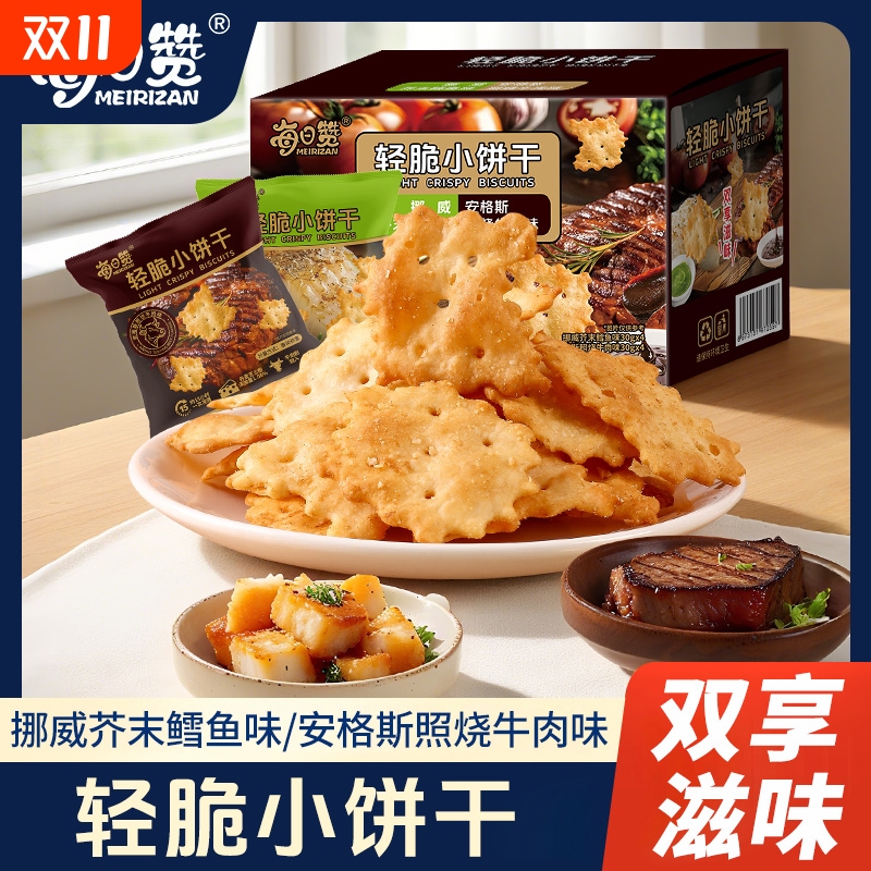 爆款清脆小芥末饼干牛肉味挪威鳕鱼味办公室零食薄脆芝士香脆照烧