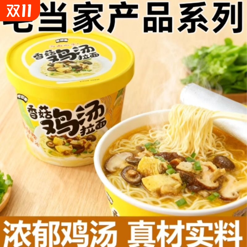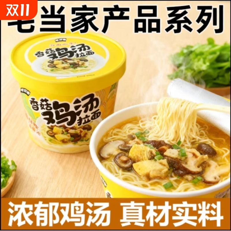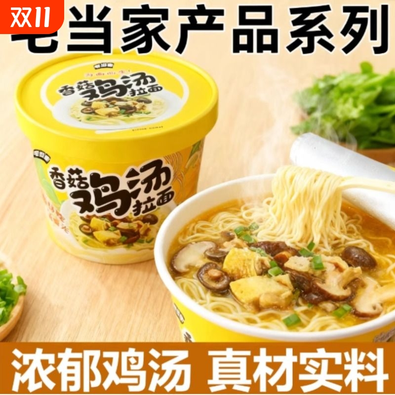 香菇鸡汤拉面劲道爽口浓郁冲泡即食早餐夜宵家中常备美味桶装
