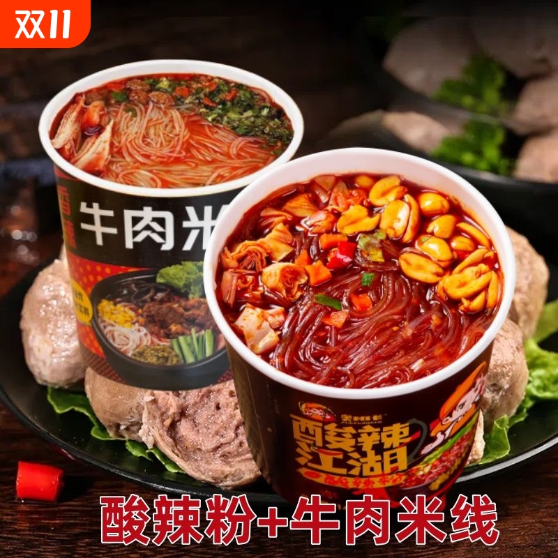 麻酱米线桶装方便速食免煮冲泡方便面香菇鸡汤香辣牛肉粉丝