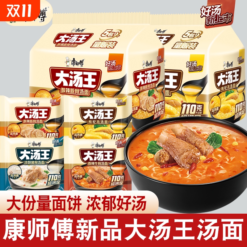 康师傅大汤王5袋装酸辣豚骨猪骨枸杞鸡汤面高汤方便面速食泡面