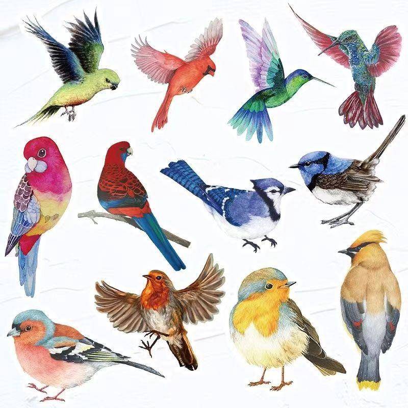 100张水墨风可爱小鸟合集贴纸喜鹊麻雀鸽子鹦鹉动物图案防水贴画