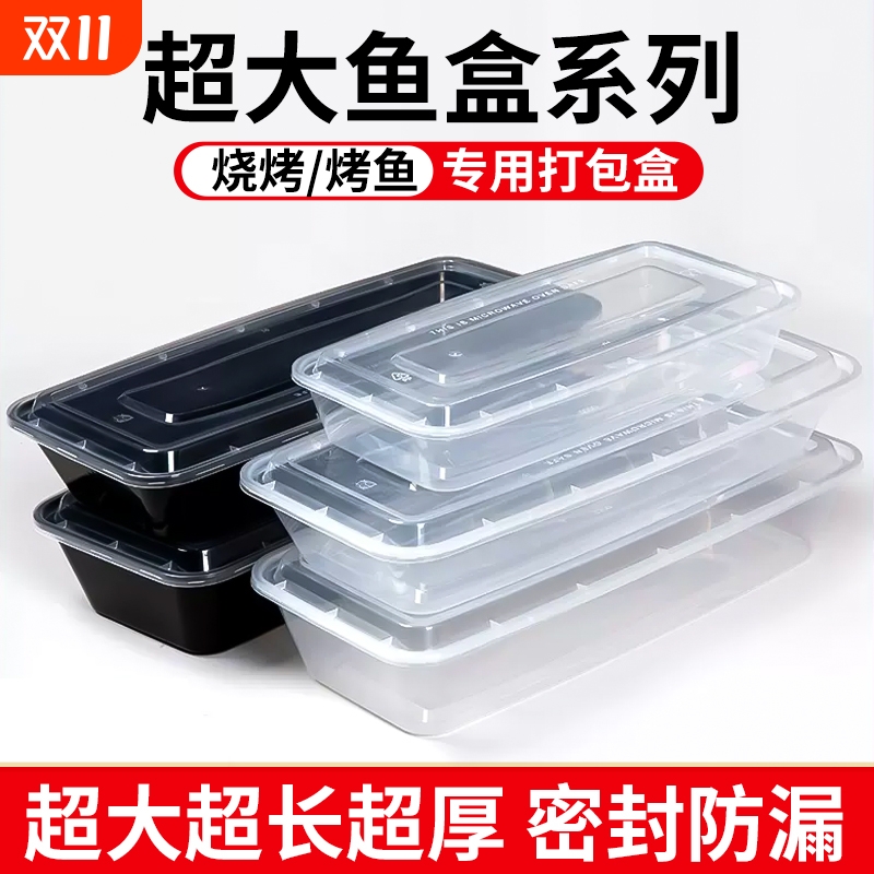 2000/3600ml烤鱼一次性餐盒长方形烧烤鱼盒外卖打包盒快餐