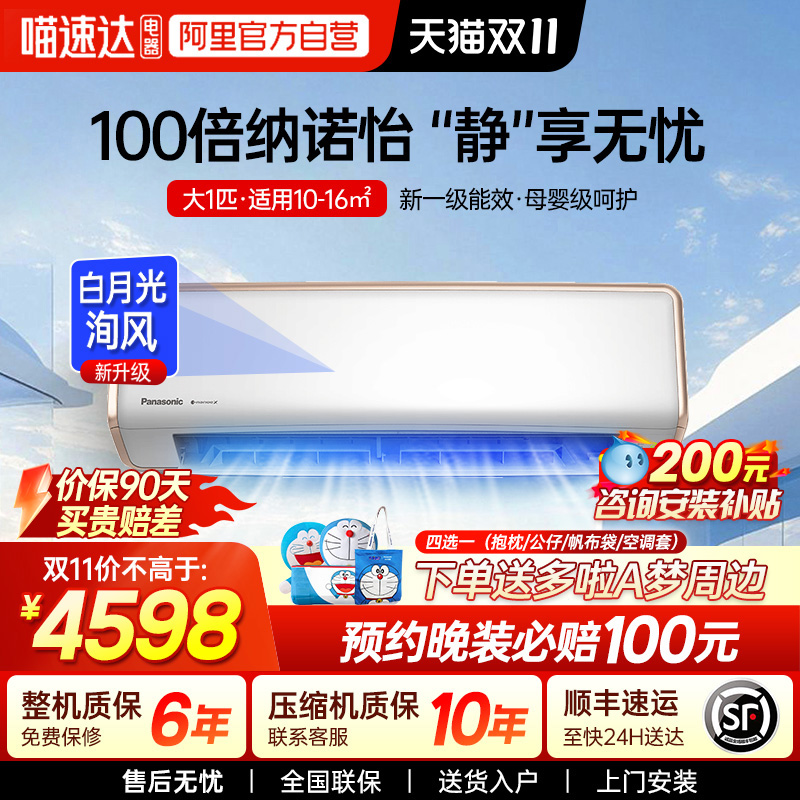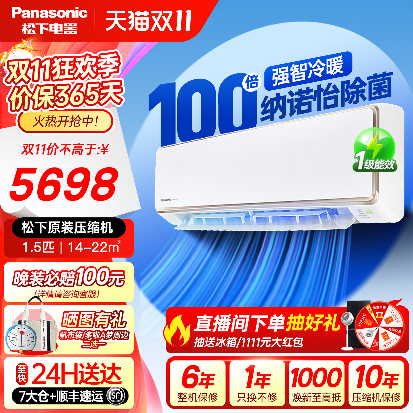 松下空调一级直流变频冷暖100倍纳诺怡壁式挂机1.5/2匹CA3