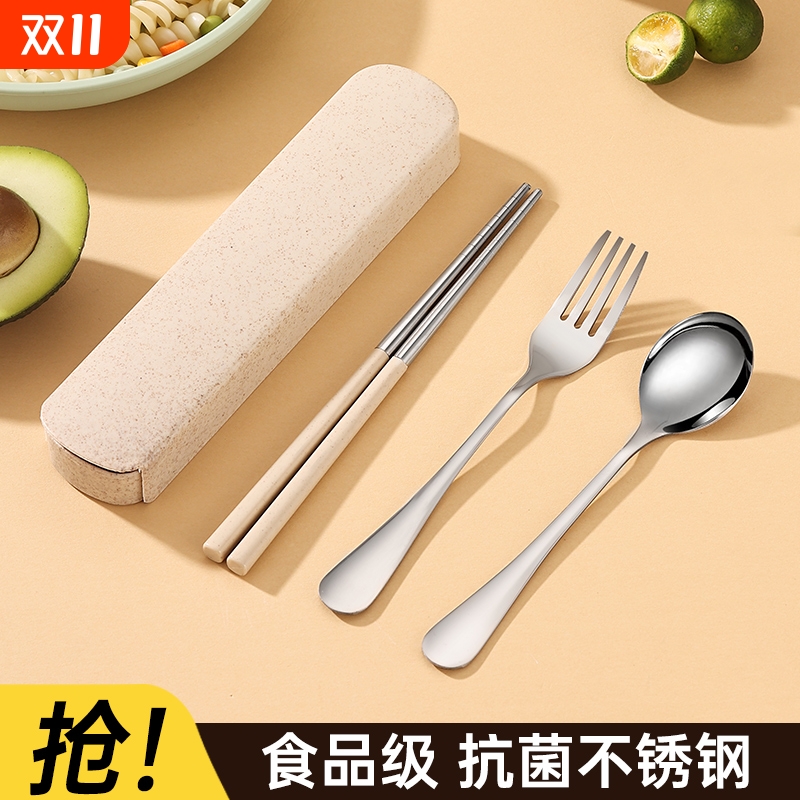 便携餐具不锈钢筷子勺子套装学生三件套收纳盒一人装勺旅行一套