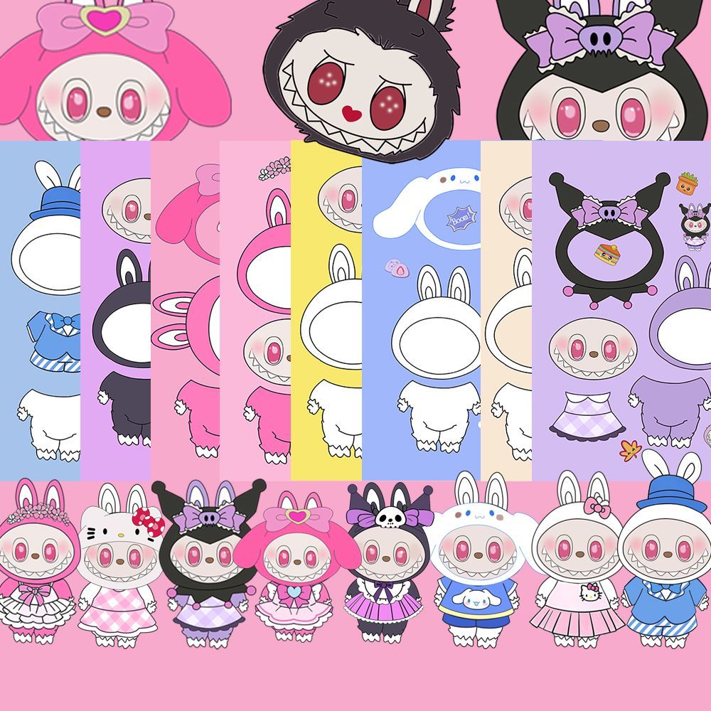 库洛米奇妙萌可拉布布换装贴纸labubu爆款女孩手工益智卡通贴画