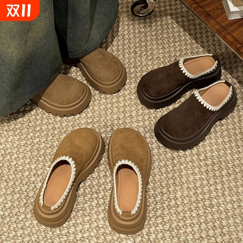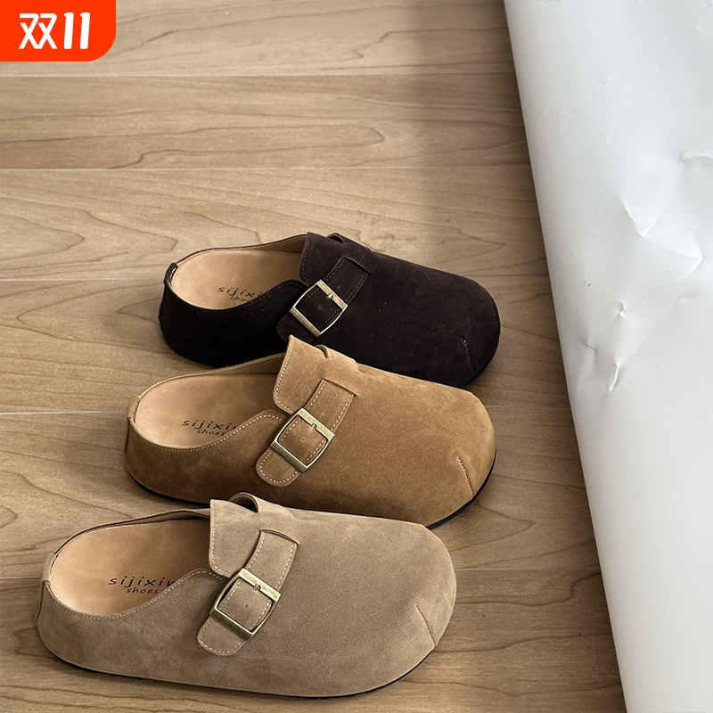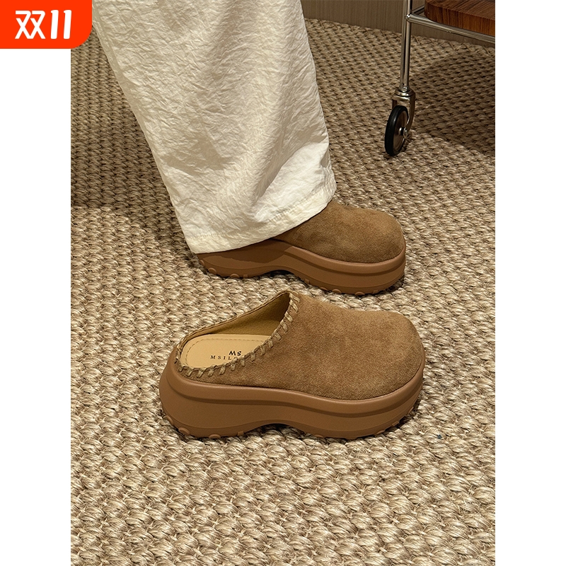 贾不假勃肯鞋女款2025新款秋季时尚百搭厚底增高一脚蹬包头半拖鞋