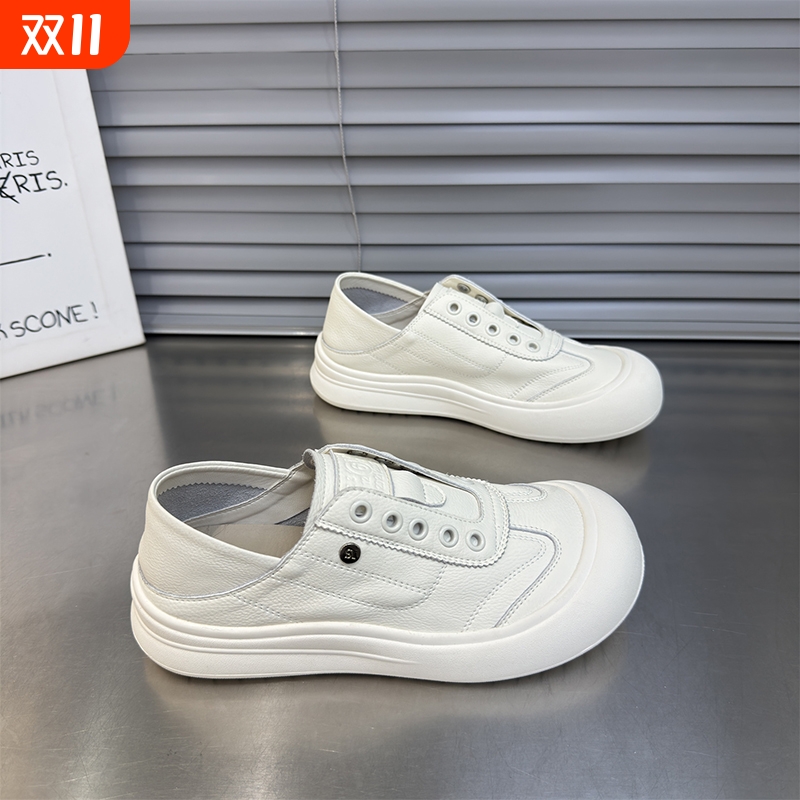 单层牛皮小白鞋女一脚蹬软底丑萌鞋2025新款百搭厚底懒人休闲板鞋