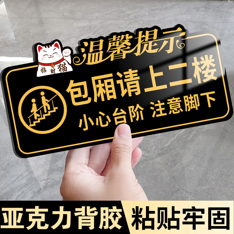 楼上有座请上二楼指示牌上下楼梯注意提示贴酒店饭店包厢门牌小心
