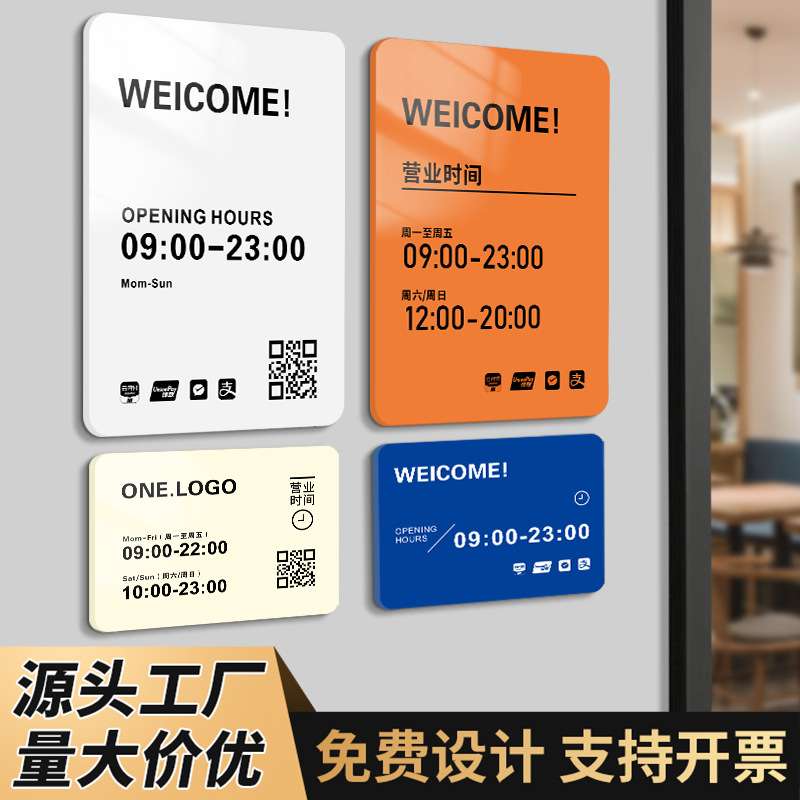 亚克力店铺营业时间挂牌服装店告示牌公司上下班休息日温馨提示牌