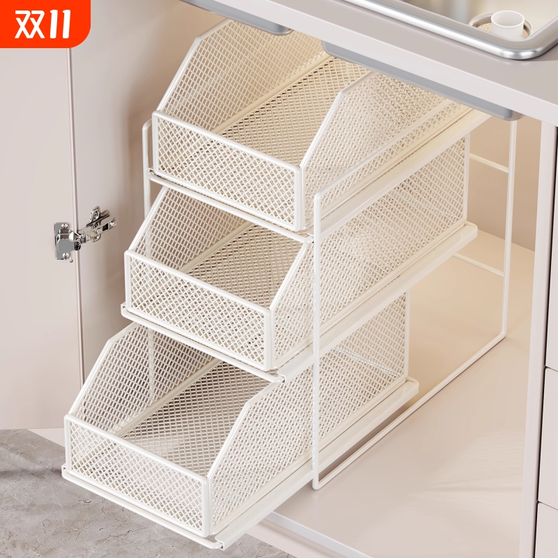 下水槽置物架分层抽拉式抽屉架子双层可调节洗漱用品水槽下方收纳