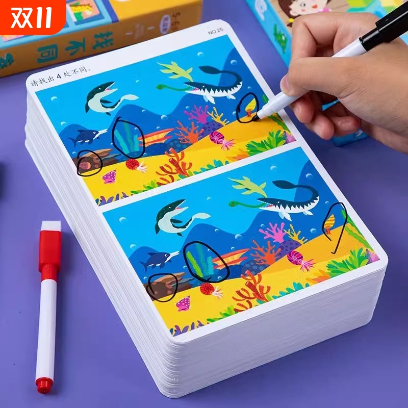 找不同专注力训练益智游戏卡2-8岁儿童趣味找不同注意力全脑思维智