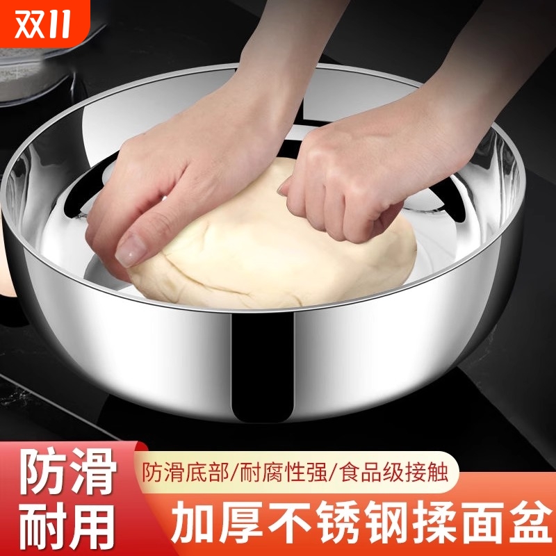 特厚304不锈钢揉面盆食品级盆子家用厨房打蛋盆汤盆沥水篮和面盆