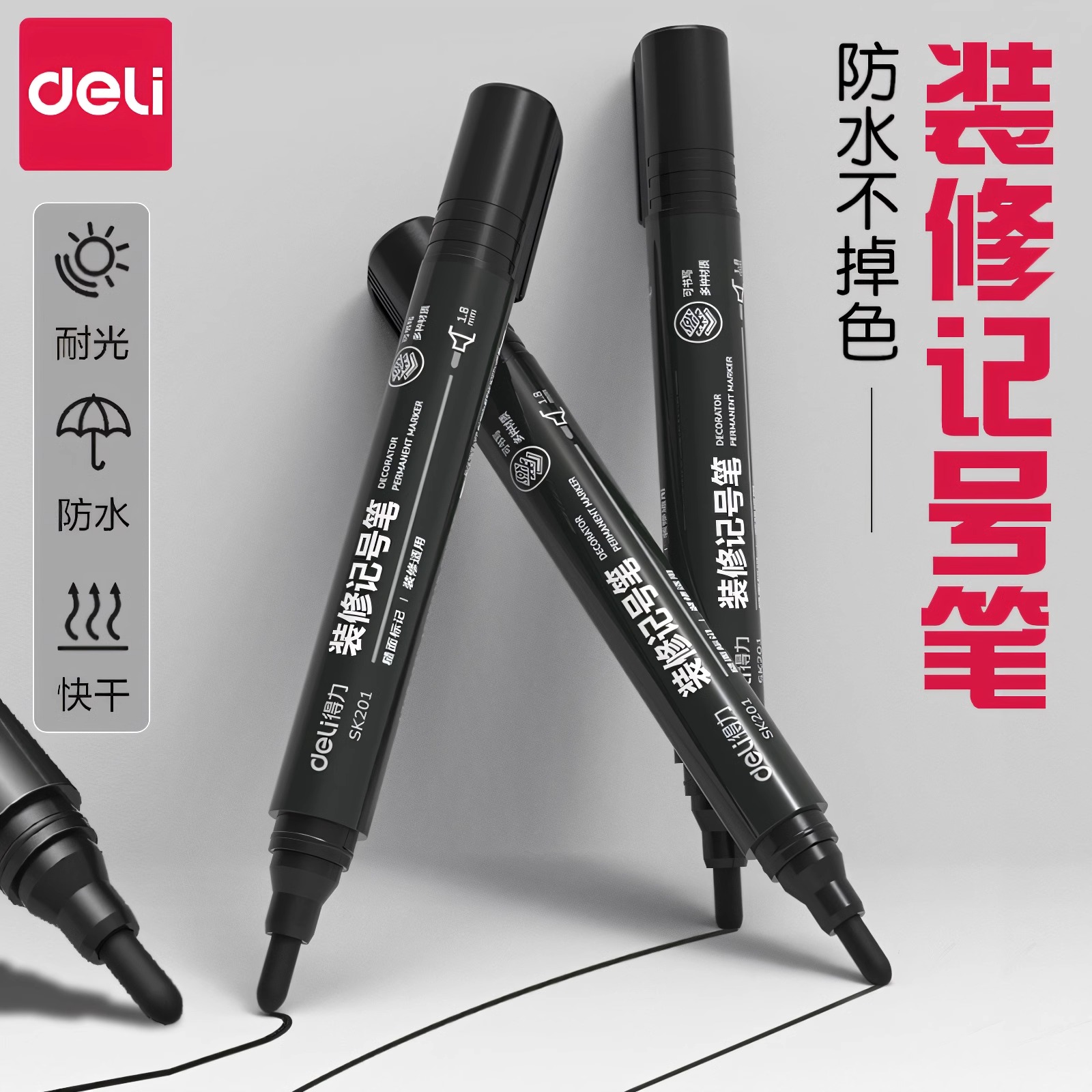 得力记号笔大容量装修工地物流通用不易褪色顺滑画线笔速干大头笔