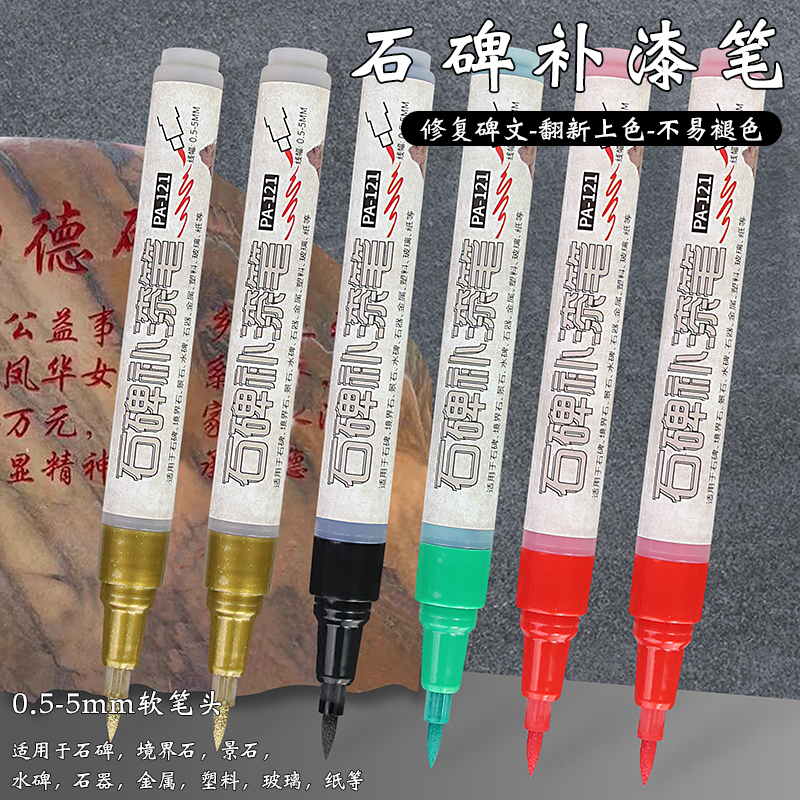 碑文补漆笔清明节石碑专用软头不掉色描字笔红色金色油漆笔补色笔