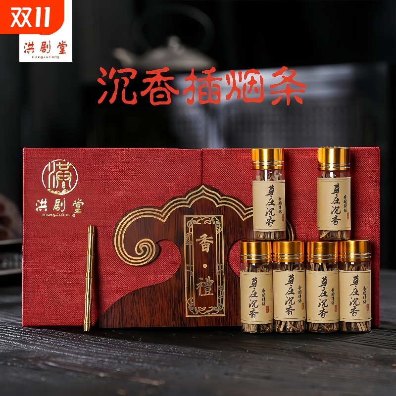 洪剧堂天然芽庄沉香插烟条礼盒装沉香条香烟伴侣中和烟气烟民必备