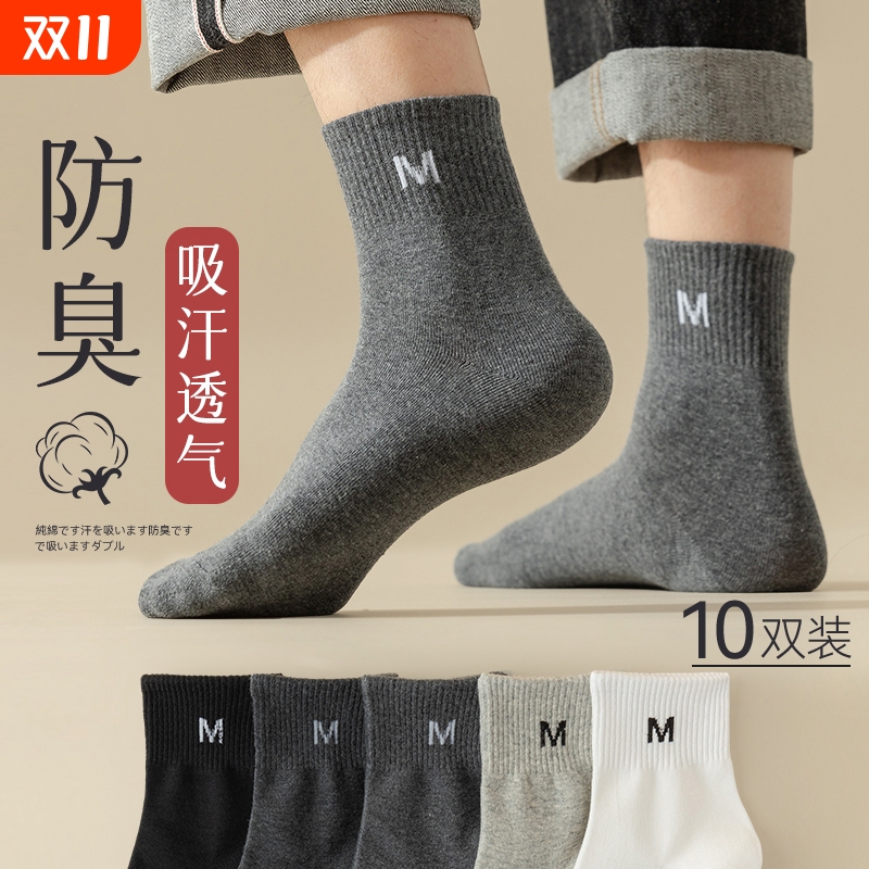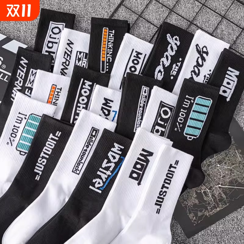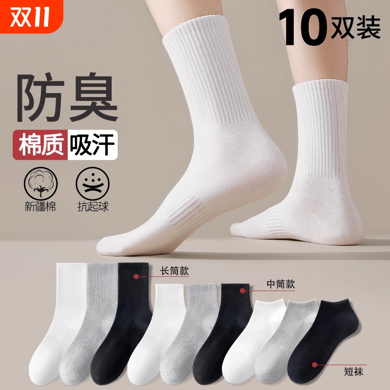 白袜子男款中筒秋冬男生青少年运动防臭吸汗男士诸暨纯色全棉长袜