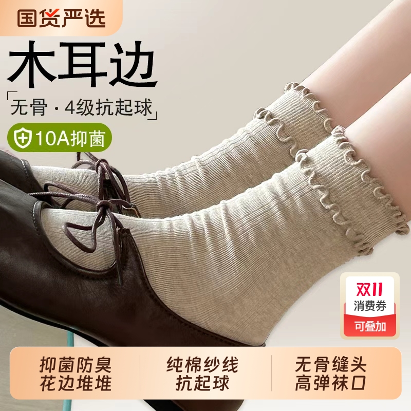 针织袜套白色袜子女春秋显瘦小腿袜y2k腿套配勃肯鞋中长筒堆堆袜