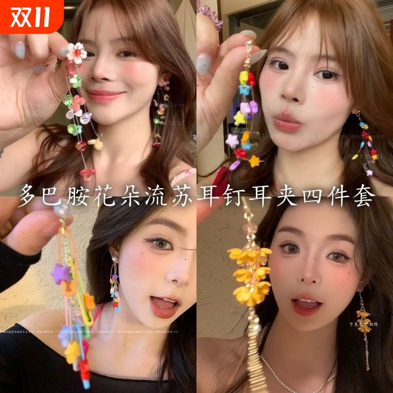 只为花忙!超仙气质多巴胺花朵耳钉女夏日出游高级感耳环百搭耳饰