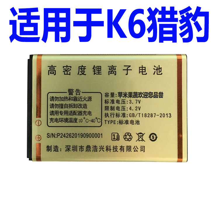 适用于K6猎豹手机电池国产老人手机K6猎豹电板对机子版本尺寸为伴