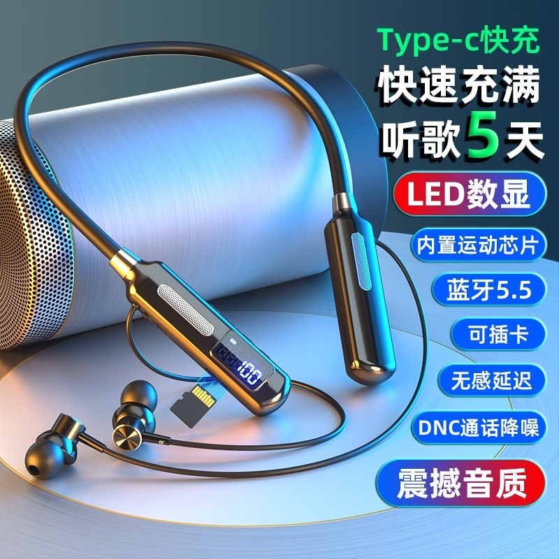 新款无线挂脖式蓝牙耳机高音质超长续航数显运动苹果华为安卓通用