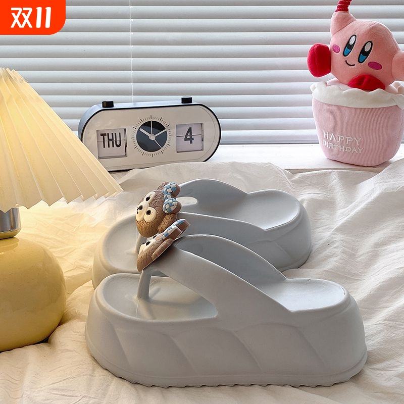 超厚底女达菲熊防滑EVA人字拖鞋海边夏季增高厚底防臭防滑凉拖鞋