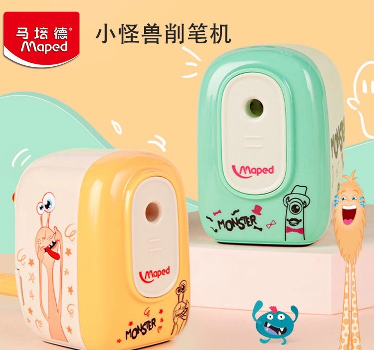 马培德Maped手摇削笔机卡通小怪兽小学生削笔刀自动进铅转笔刀