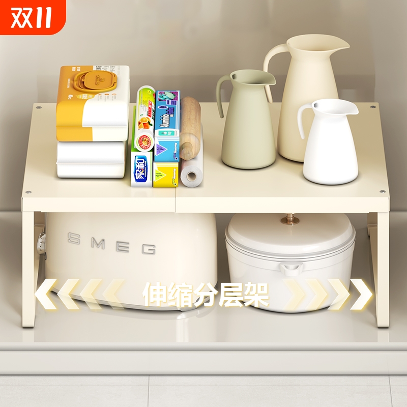 可伸缩厨房置物架台面橱柜隔板分层架柜内调料收纳锅架桌面小架子
