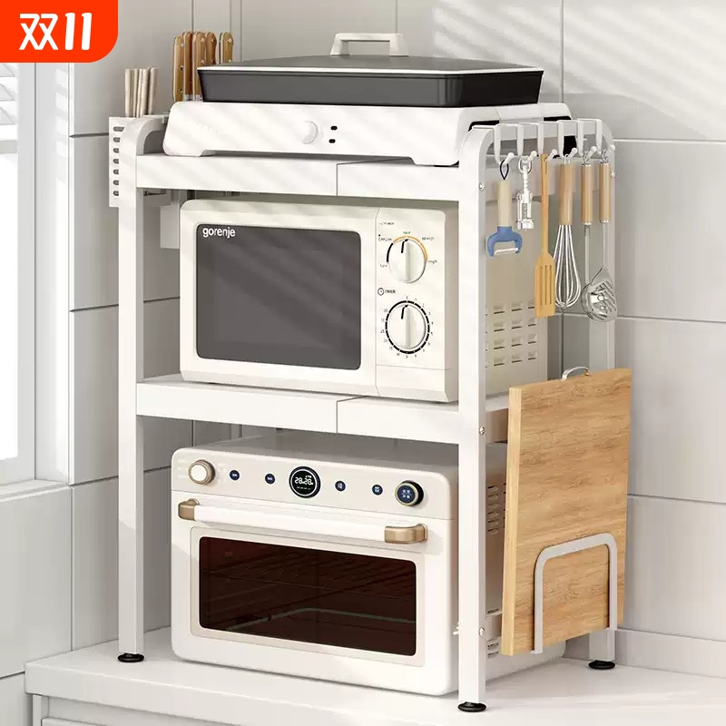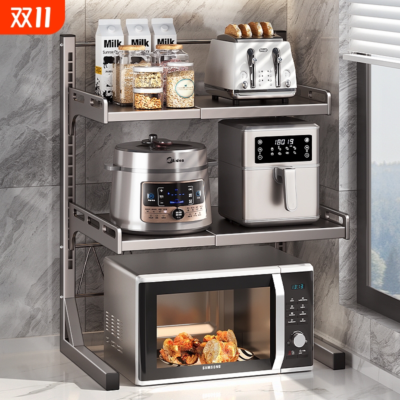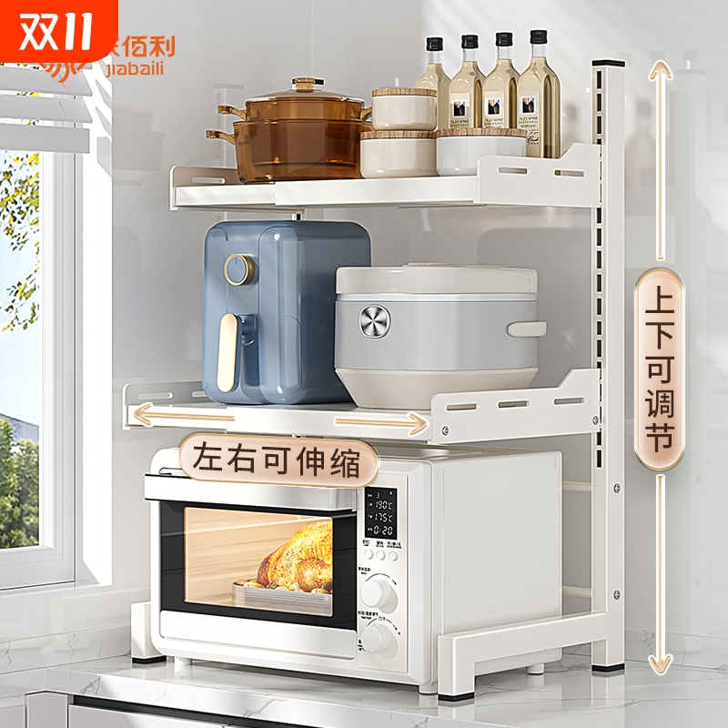 厨房微波炉置物架烤箱架子家用台面桌面双层可伸缩电饭锅收纳支架