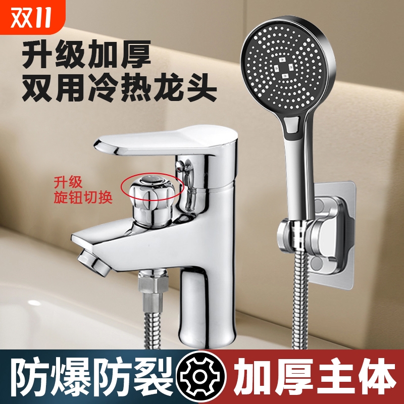 单孔面盆水龙头带淋浴花洒台盆洗脸盆冷热水双用浴室洗头龙头拉伸