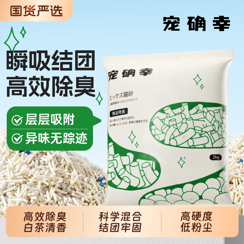 宠确幸豆腐猫砂膨润土混合砂除臭防臭低尘不粘底速溶可冲马桶2kg